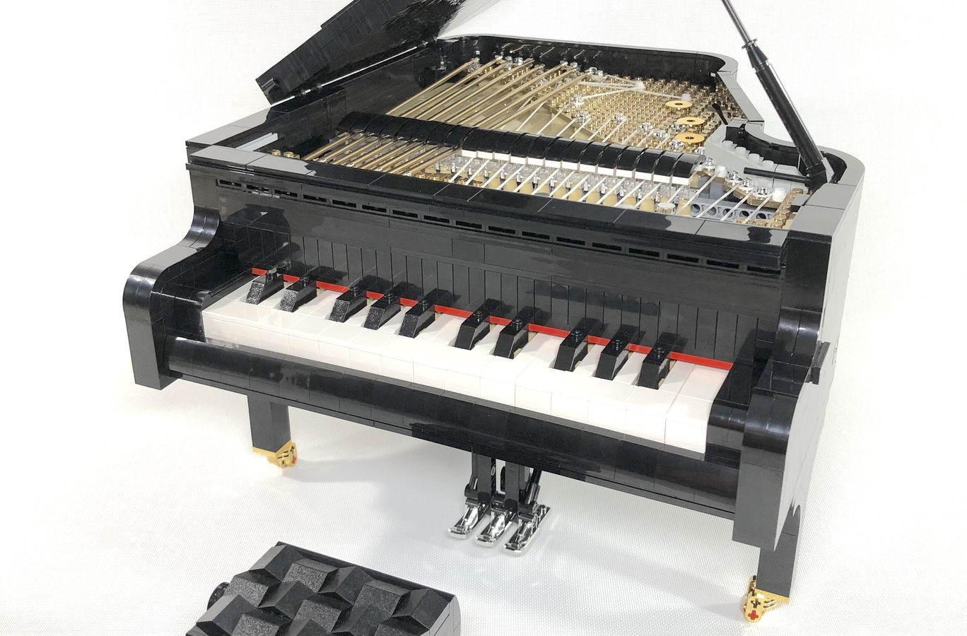Finishing the model and seeing it work smoothly brought me great satisfaction. The lego ideas grand piano 21323 has a removable 25 key keyboard authentic hammer action moving dampers and pedal and motor. Making the lego piano playable was my main focus when i designed this model and at the same time the most challenging part of the build.